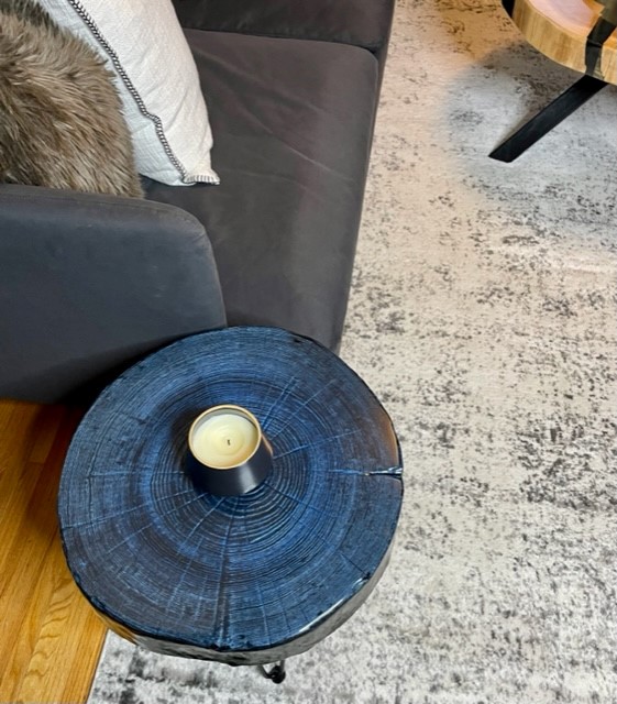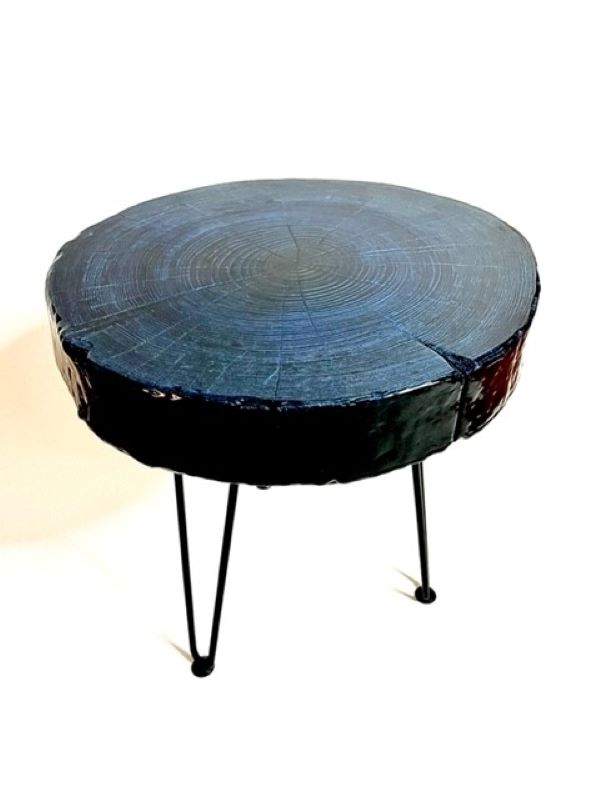 Our Galaxy Side Table makes the perfect addition to any home or office space. From a distance it appears sedate and understated, but when you look at it from the top it has a range of blue hues making it look like a night sky. Hand crafted from a slice of an Ash log. This table top was first kiln dried be for using a traditional Japanese method of preserving wood called Shou Sugi Ban. Then finished with epoxy and blue mica powder to create this gorgeous galaxy effect.
